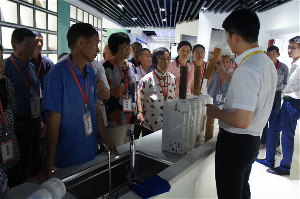 參觀中,安徽望江地區的李先生詢問有沒有能過濾井水的產品,“我們家里沒通自來水,這些天連續大雨,家里井水犯渾,根本沒辦法喝。”工作人員向其推薦了專門為農村地區研發的自吸式純水機,產品能有效克服水壓不足、不穩問題,采用先進的反滲透技術和五級過濾系統,能夠高效濾除水中雜質,去除水垢、水堿、農藥、化肥、細菌、重金屬等有害物質。在展廳,消費者切身感受了產品使用效果,在飲用機器現制的水之后,紛紛稱贊產品功能強。