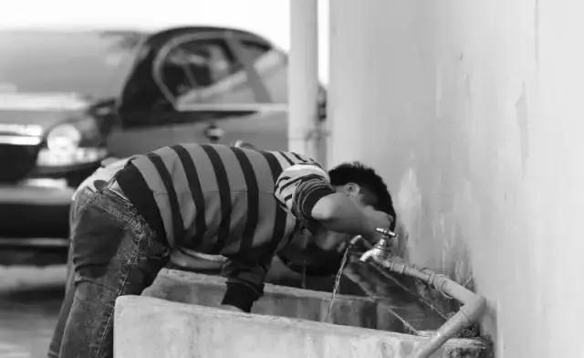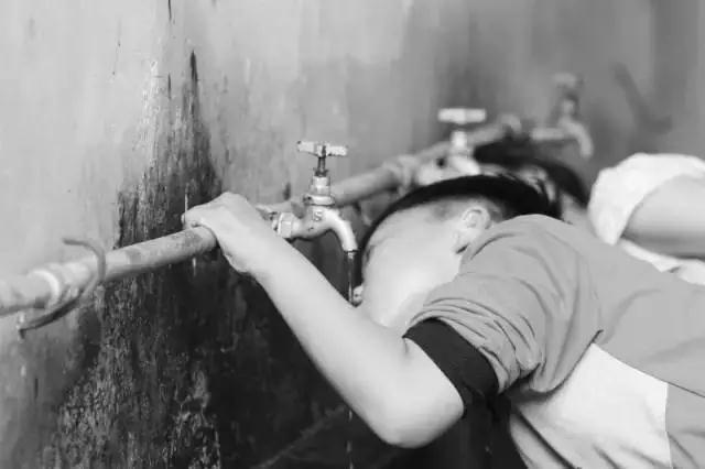 ▲孩子只能乘中午的時候排隊喝水