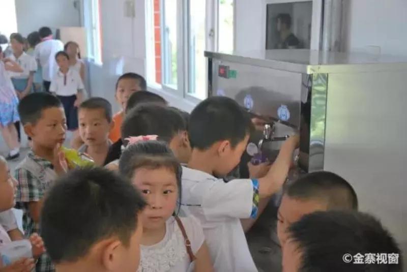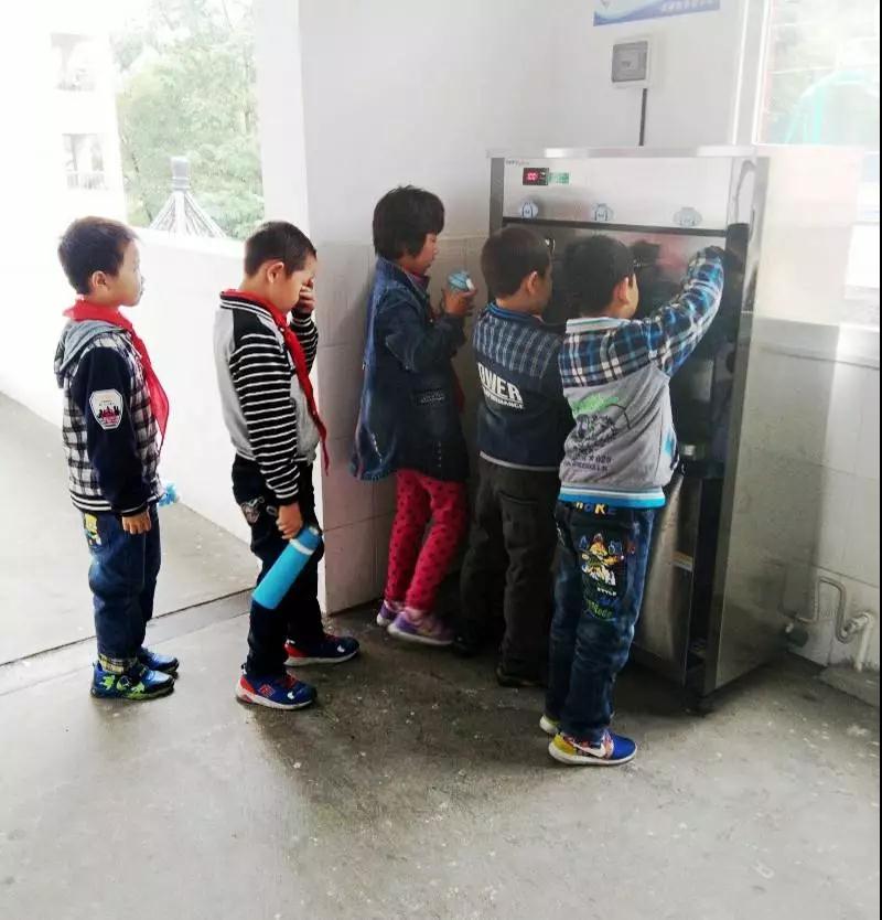 已安裝過凈水加熱設備的學校,孩子們正在排隊打水