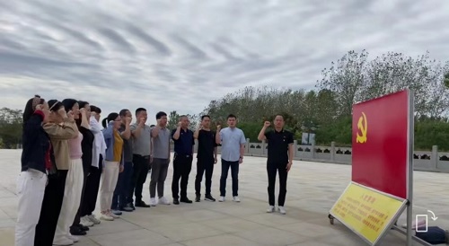 面對鮮紅的黨旗,目光堅定,緊握右拳,鏗鏘有力地對黨旗莊嚴宣誓。錚錚誓言,激勵廣大黨員充分發揮先鋒模范作用,在以后公司建設發展中更好地發揮帶頭作用。
