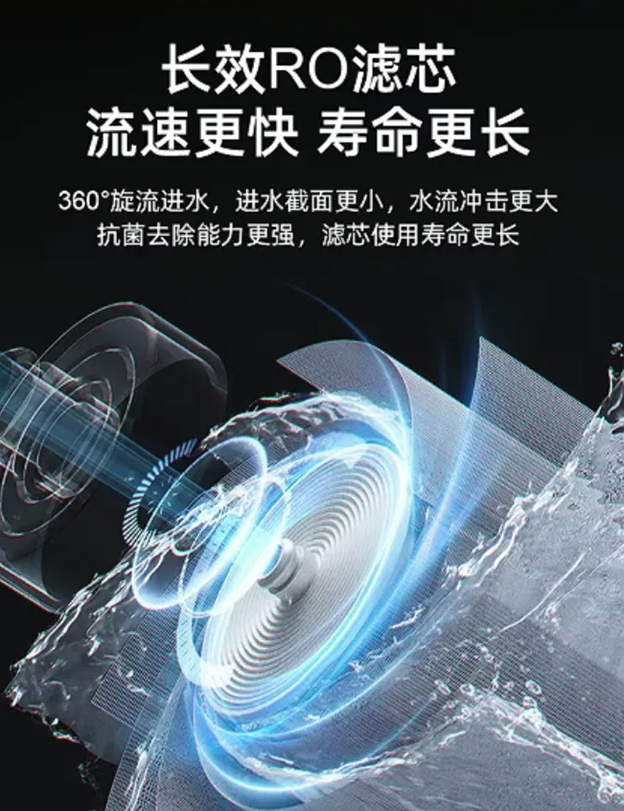 核心采用3芯5級過濾、RO反滲透技術(shù),強(qiáng)力濾除重金屬、細(xì)菌等有害物質(zhì)。同時(shí),其 360° 旋流進(jìn)水設(shè)計(jì),可實(shí)現(xiàn)更快流速,延長使用壽命,且抗菌去除能力更強(qiáng)。貼心升級大孔徑出水龍頭,接滿一杯僅需數(shù)秒,告別涓涓細(xì)流的漫長等待。