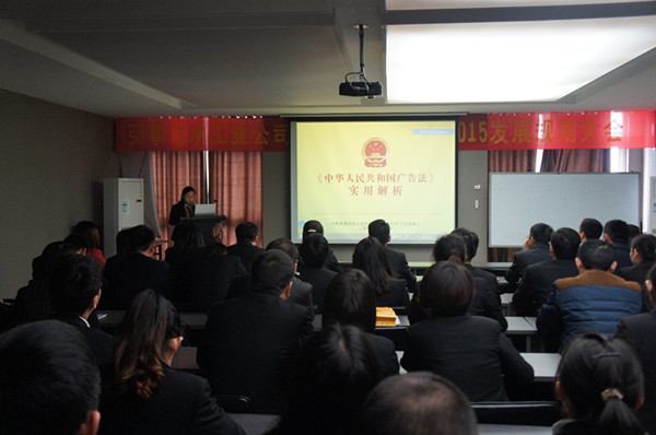 新修訂的《中華人民共和國廣告法》于9月1日起正式施行,為更好地貫徹、落實新廣告法,保證公司市場宣傳語營銷活動的有序進行,11月10日下午,榮事達水工業公司新廣告法學習會議在智能研發中心三樓會議室召開,公司各事業部、成員單位總經理及企宣、銷售等相關人員濟濟一堂,共同學習了新廣告法的相關規定。
