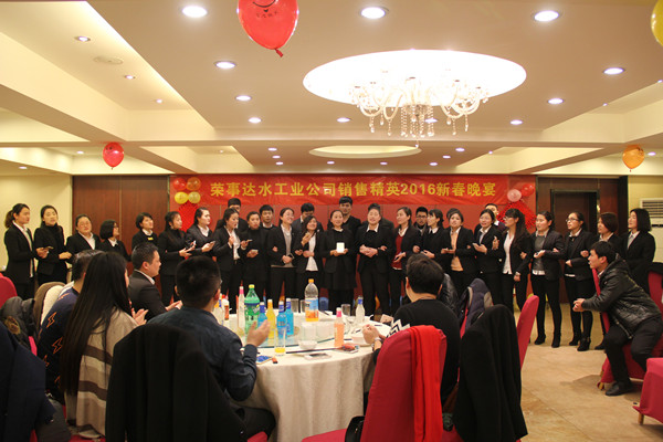 晚上六時,全體銷售精英參加了晚宴,王總在晚宴上作重要發言,他指出,2015年,在各部門的共同協作之下,榮事達凈水機網點覆蓋率穩步提升,3T模式在終端引發銷售狂潮,事業部銷售業績再創新高。他希望在2016年,廣大銷售精英將榮事達優質的產品、服務與終端營銷有機結合,奮勇爭先、昂首闊步刷新銷售戰績。