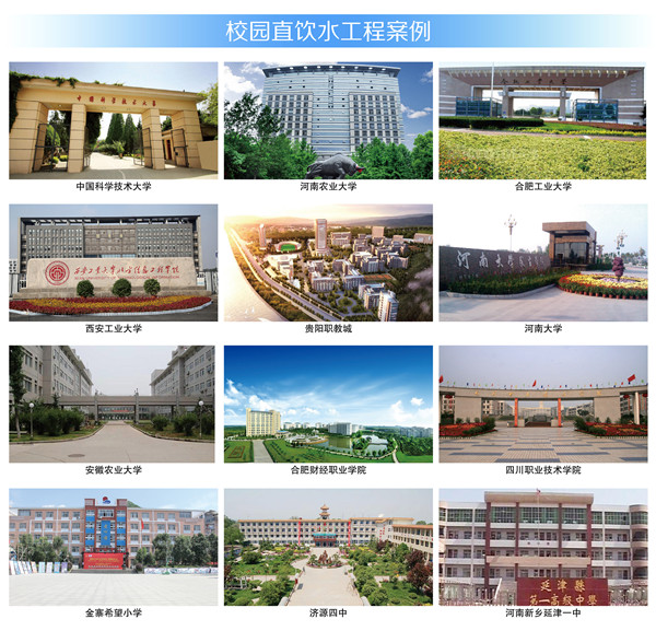 榮事達(dá)長期以來致力于發(fā)展校園直飲水,多年來憑借著優(yōu)質(zhì)產(chǎn)品、專業(yè)設(shè)計、先進(jìn)模式、高端服務(wù)領(lǐng)航業(yè)界,在多項(xiàng)大型校園直飲水工程投標(biāo)項(xiàng)目中脫穎而出,承建了中國科學(xué)技術(shù)大學(xué)、合肥工業(yè)大學(xué)、河南大學(xué)、貴陽職教城等數(shù)千所學(xué)校的直飲水工程,呵護(hù)百萬師生。榮事達(dá)將不忘初心,繼續(xù)為校園師生締造最為理想的健康飲水環(huán)境!
