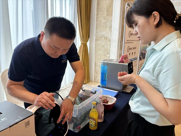 與會嘉賓紛紛駐足,親自體驗了榮事達冷熱一體機、大通量凈水機以及富氫水機等高科技產品。特別是當大家品嘗到經榮事達食材凈化機殺菌處理后的水果后,都紛紛表示口感絕佳,與僅用清水清洗的水果相比,更加清爽可口。