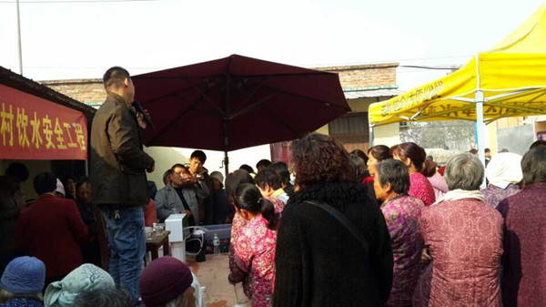 此次活動受到豐縣廣大村民的熱烈歡迎,見到了產品功效,嘗到甘甜的純凈水,許多村民現場即預訂了產品。短短十多天,當地代理商已為100多戶村民家庭安裝凈水機,接上了安全水。