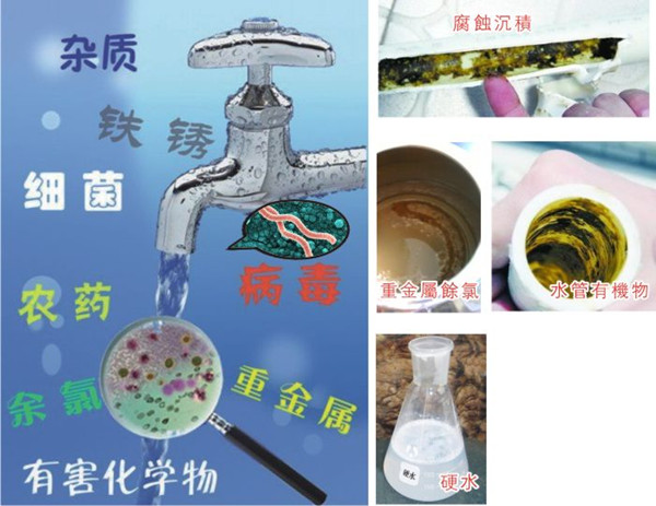 我國的自來水與世界相比屬于極低標準水,即使部分達標的自來水在輸水管網、高樓水塔中也會造成二次污染而不達標。我國目前水廠只能對物理污染和微生物污染進行凈化處理,而無法對化學污染,諸如農藥、殺蟲劑、合成洗滌劑、重金屬、各種有機物、無機化合物及其他有害毒素進行處理。因此,僅把水煮沸、燒開并不是完全安全的。
